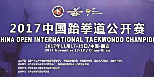 由世界跆拳道联合会(WT)主办,中国跆拳道协会(CTA)承办的“2017中国跆拳道公开赛”于2017年11月17-19日在陕西省西安市城市运动公园举行。
