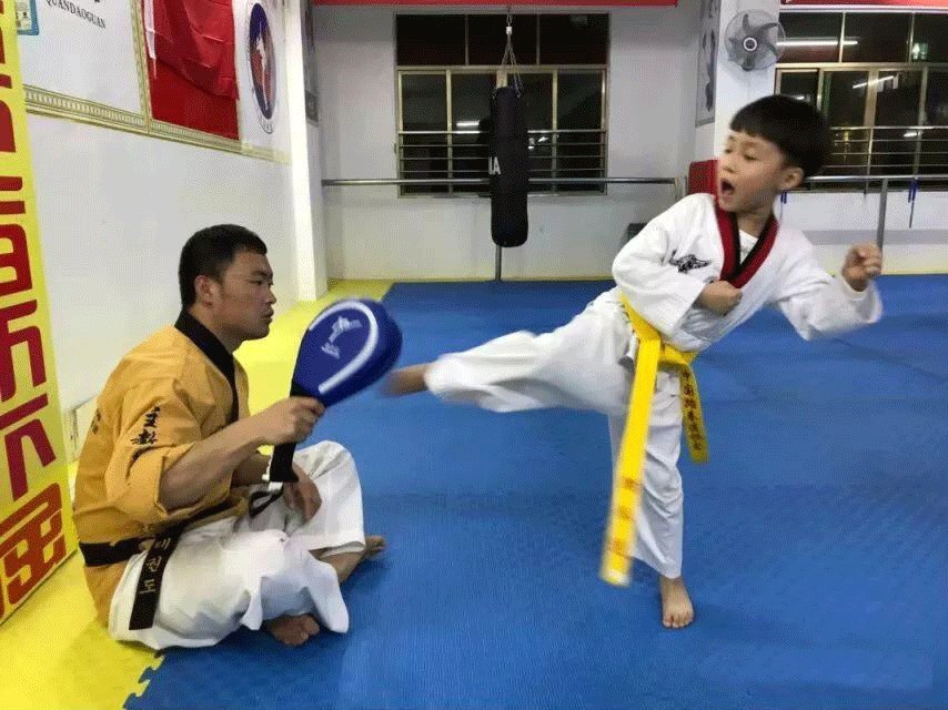 跆拳道独特的训练方法和优美实用的腿上功夫,能令孩子在训练中不知不觉地养成专注的习惯。